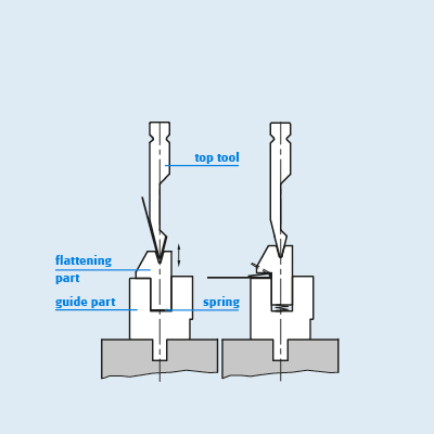 U-shaped hemming tools are a combination of top and bottom tools that can be used for both pre-bending and closing.